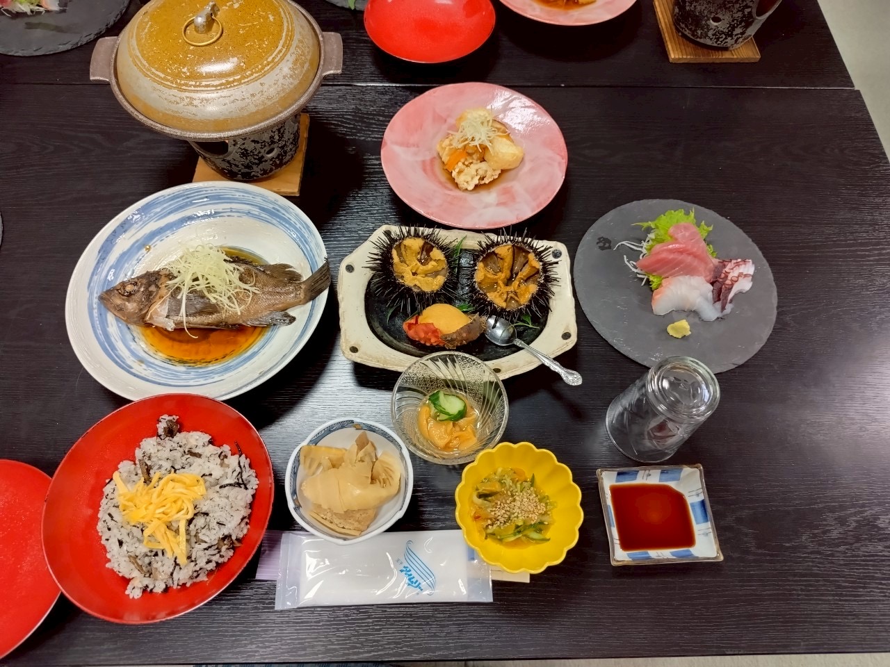 *酷暑の影響でなかなかお目にかかれないホヤをはじめ、美味しそうなお食事が並んでいます。ありがたいです(´;ω;`)