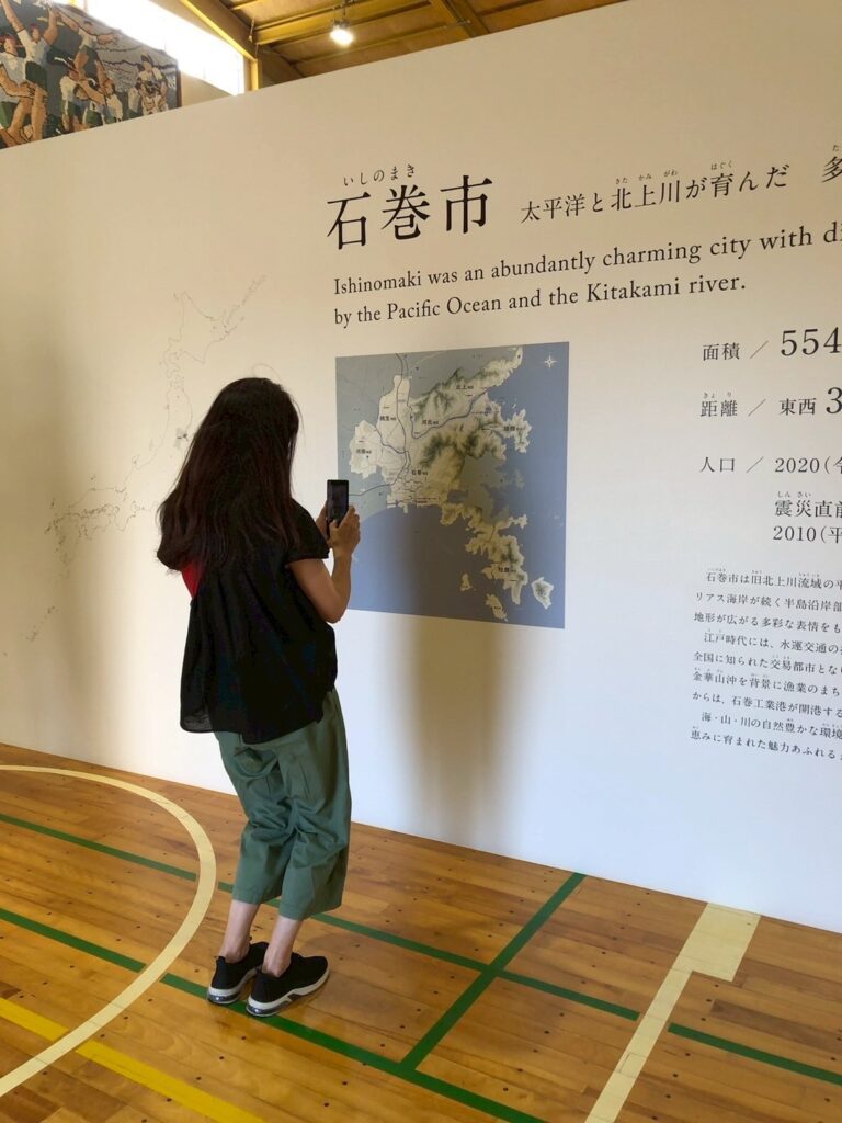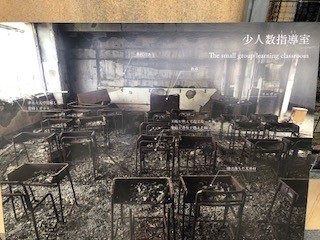 熱心にメモを取られている方、集合時間ぎりぎりまで映像をじっくり御覧になっていた方、 被害の様子や避難時に教員の方・児童が感じたことを文章にした掲示を真剣に読んでいた方。思い思いに見学なさっていましたが、1時間半ではとても時間が足りません。映像では、被災した当時の小学生だった方・教職員の方のインタビュー映像も流れていました。その中で教職員の方がおっしゃっていた「教師は(勉強・教科を教えるだけではなく)生き方を教える職業だと思っています」というひと言だけ急ぎメモをとりました。ご本人の意図とは違うかもしれませんが、生き方とは、将来生き抜く術、震災を経験された方だからこその「自然に抗うことは出来なくても、有事にどういった行動をとれば少しでも被害を最小限に食い止め、自分とまわりを守れるか。」という思いが伝わってくるような気がしました。幾度も大きな災害が起きているこの日本(世界)で生き抜く術、生きる力は、日々の生活にこそあるということだと感じます。