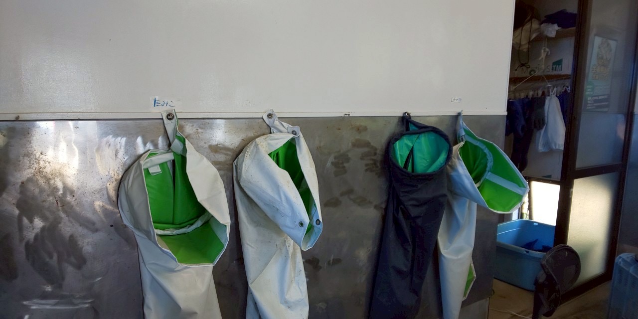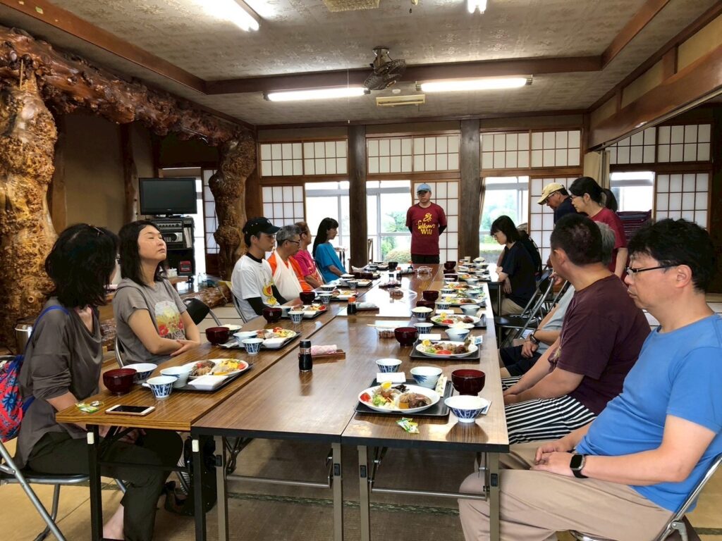 高倉荘がある歌津から戸倉までは少し距離があるので、8時半過ぎには戸倉の作業場所に到着するように出発です。昨晩はちょっと遅めの高倉荘到着で、翌朝も少々あわただしい出発ですが、高倉荘のお父さんとお母さんはいつも通り温かくお見送りしてくださいました。次回は10月のワイナリー作業ボランティアツアーの時にお世話になります。よろしくお願いいたします。