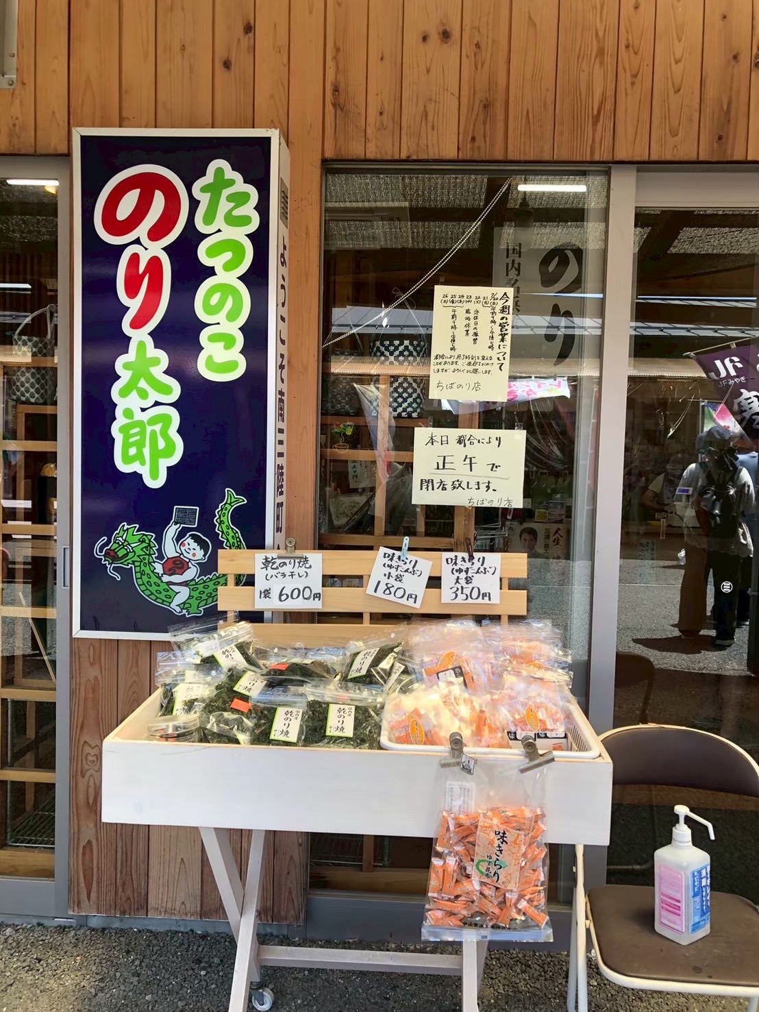 さて、リピーターさんお目当ての「千葉のり店」さんが開いているといいのですが・・・。千葉のり店さん営業中でした!皆さん美味しいのりを購入できたようで良かったです。さんさん商店街で40分ほど時間を取れたので、お土産やお昼ご飯調達をできたようです。