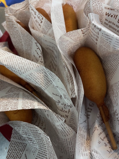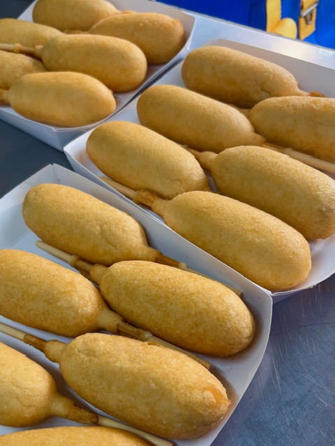 今回は子供たちが大好きな「アメリカンドック」を100本、リンゴジュースを100個用意しました。