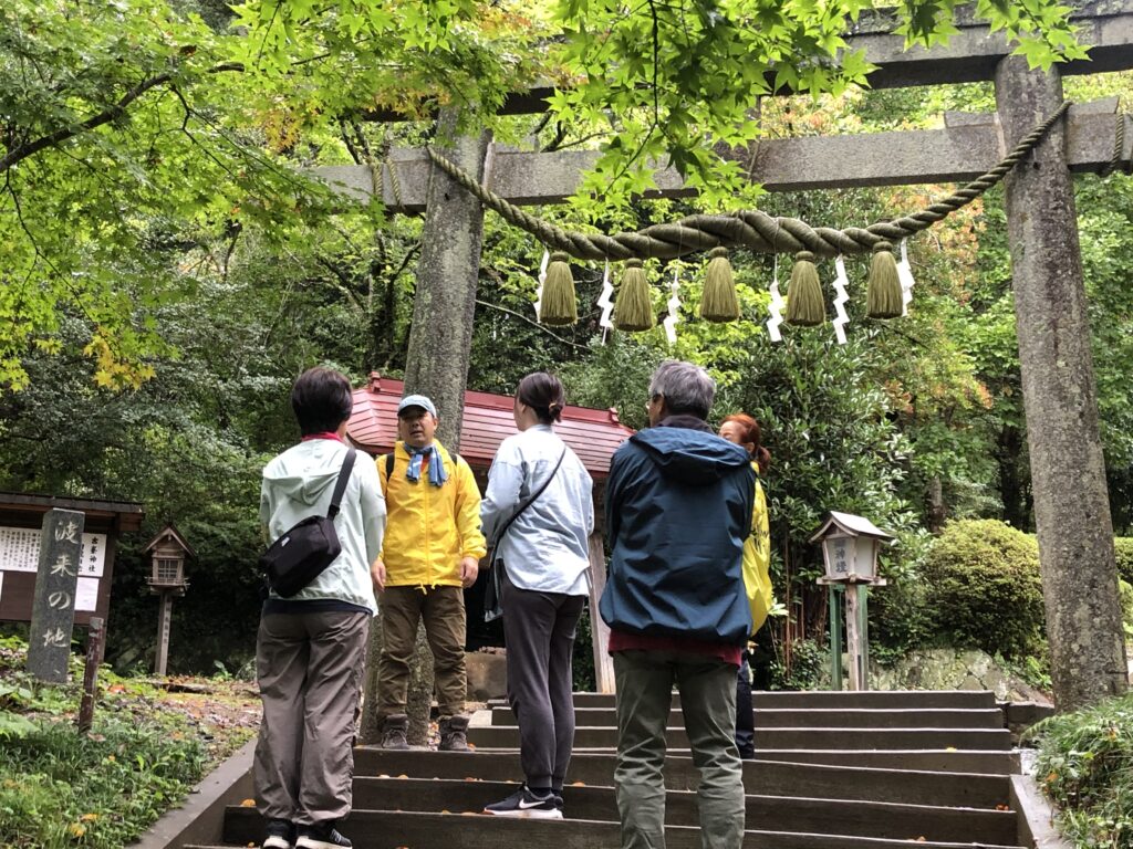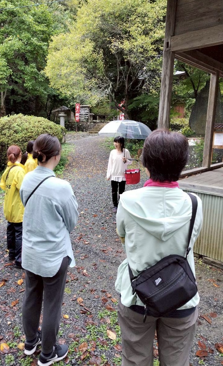 フェローズのツアーバスに気が付かれた禰宜の工藤真弓さんが、外に出て来て下さいました。