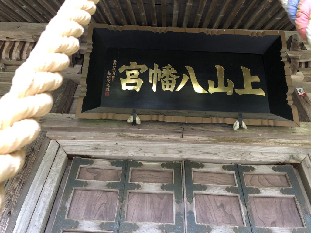 鎌倉時代から続いている上山八幡宮さん。もともと西の山のふもとにあった社殿は町の中心街(八幡町)にお引越し、300年程鎮座していましたが、昭和35年のチリ地震津波で拝殿並びに社務所は浸水して境内の樹木も被害を受けたそうです。その後、昭和45年に東の山(上の山)に一晩でお引越しをしました。そのお蔭で東日本大震災の際には大きな被害は免れました。